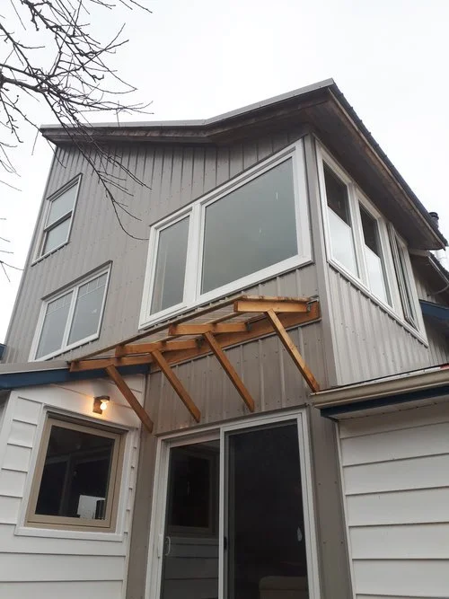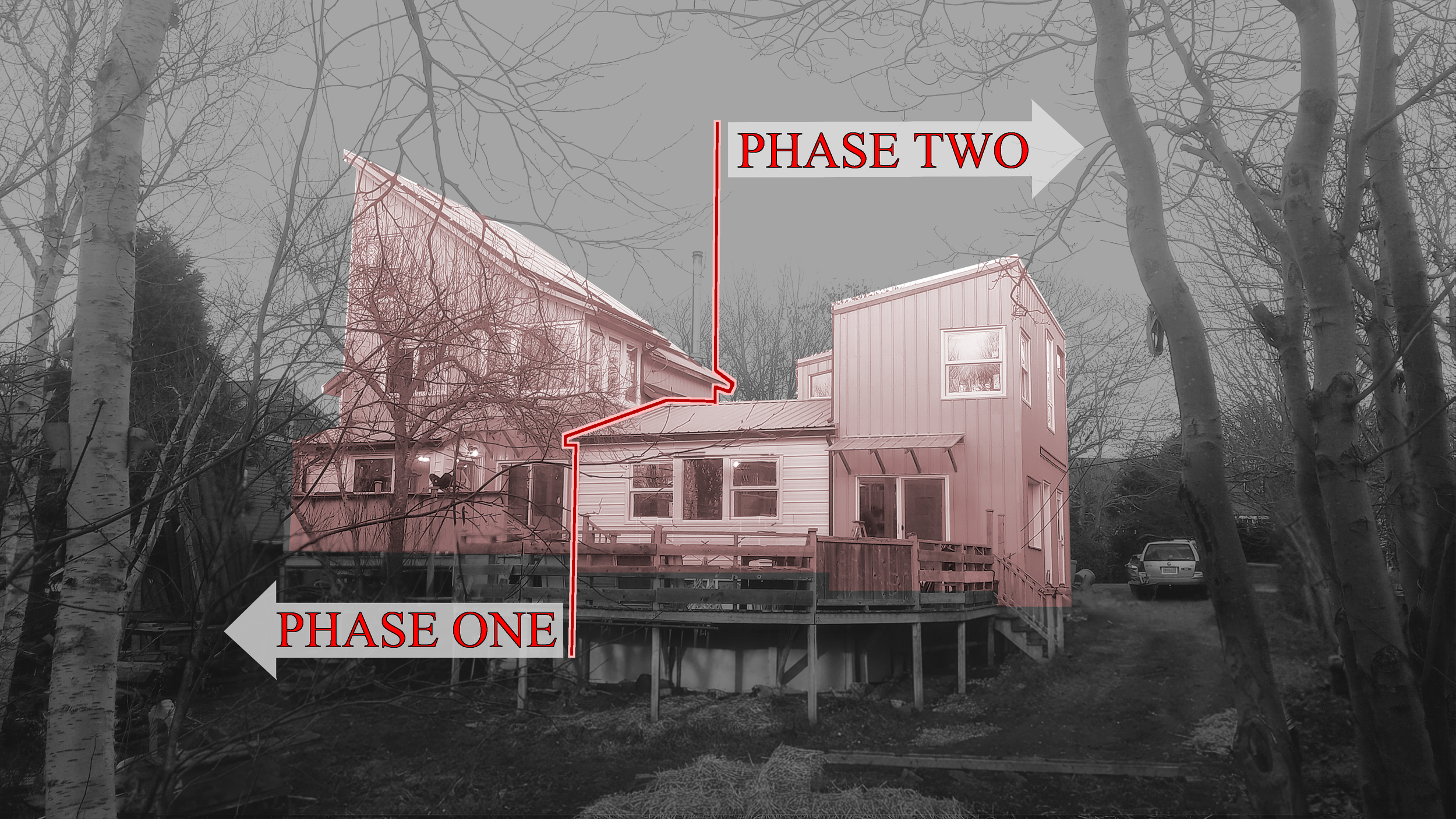 The original vinyl clad house is a perfect example of a traditional Nova Scotia conundrum; whereby two separate houses from different lots were brought together on two adjacent foundations before undergoing a series of further additions (at least three more). The challenge was how to open up the floor plan and raise the roof to bring in sunlight. The solution involved two phases. First renovating the original house to the north and then renovating the miscellaneous additions to the south.