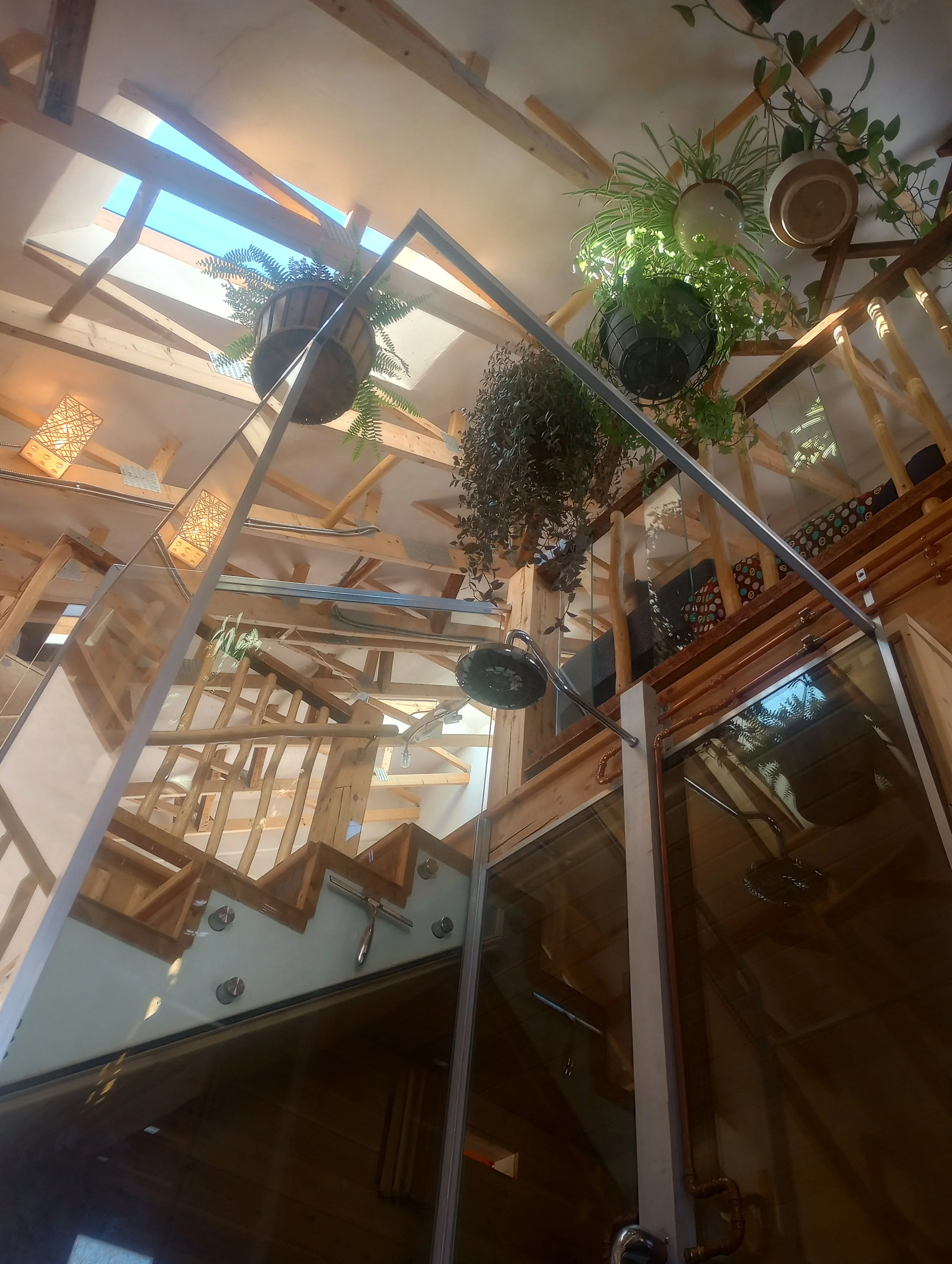 We left the existing roof line, brought an independent post and beam structure up from the basement to hold up interior floors and used new trusses to create a clear span between exterior walls. We left the trusses exposed on the inside to make the space feel larger.